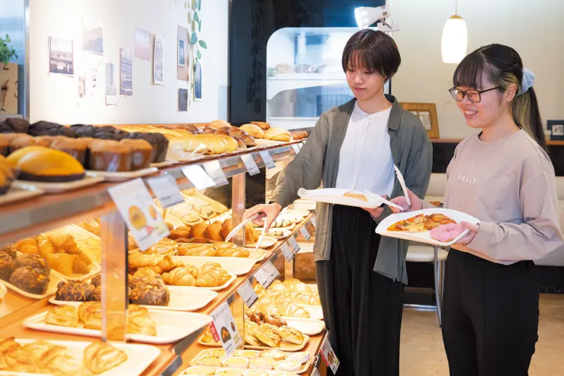 学生に人気のお店!焼き立てパン、サンド、パスタを提供しています。