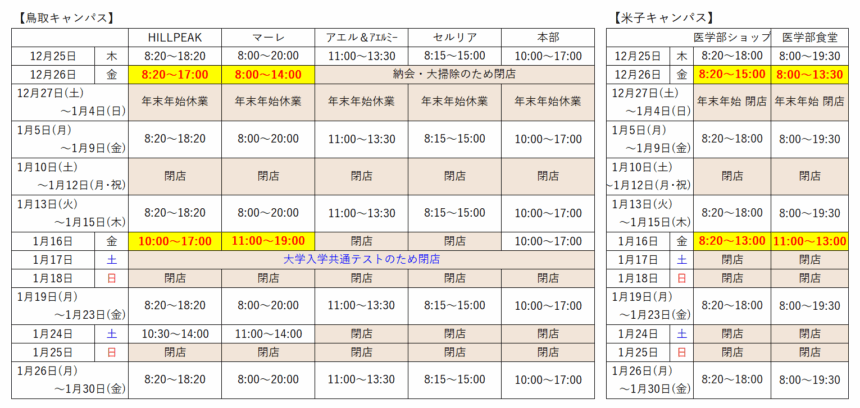 いつもご利用ありがとうございます。鳥取大学生協です。